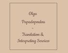 Η Όλγα Εμμ. Παπαδοπούλου είναι επίσημη μεταφράστρια & διερμηνέας συνεδρίων, τακτικό μέλος της ΠΕΕΜΠΙΠ (Πανελλήνια Ένωση Μεταφραστών Πτυχιούχων Ιονίου Πανεπιστημίου) και πάρεδρο μέλος του ΣΥ.ΔΙ.Σ.Ε (Σύνδεσμος Διερμηνέων Συνεδρίων Ελλάδος).